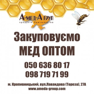 Оптова закупівля меду від 300 кг. Розрахунок відразу. В наявності власний транспорт та обладнання для виїзної закупівлі. З усіх питань звертатися за тел: 050-6368017 098-7197199 Андрій Сергійович. Наша адреса: місто Кропивницький, вул. Лавандова 27а (біля Митниці) Працюємо по областям: Кіровоградська, Черкаська обл.